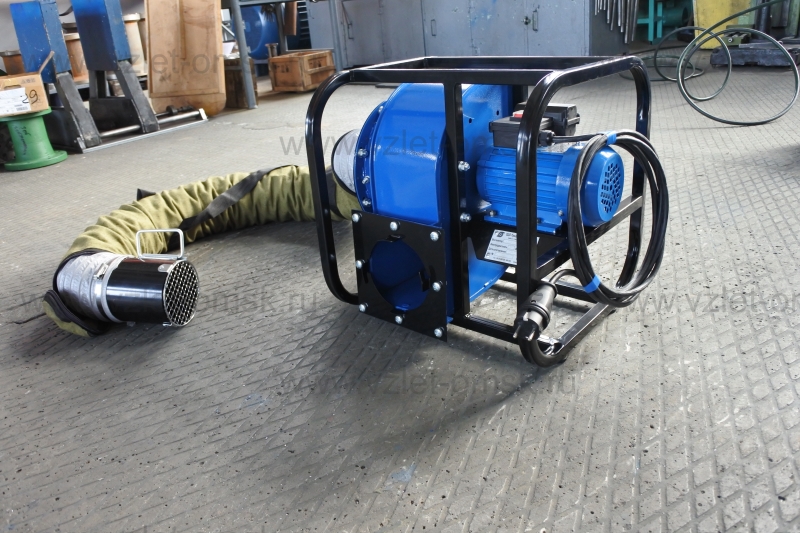 Переносной вентилятор ВП-2000 работает в двух режимах: приточный и вытяжной в зависимости от того, какой патрубок подключён к обслуживаемому объёму и выдерживает температуру от -30 до +45 ºС.