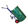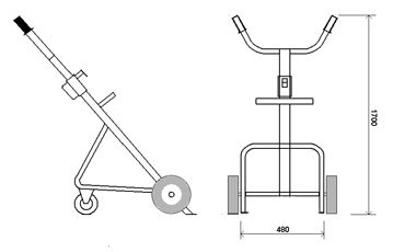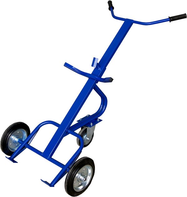 Тележка для перевозки бочек из металла, которые фиксируются "плавающим" затвором. Оснащена дополнительным колесом для опоры.