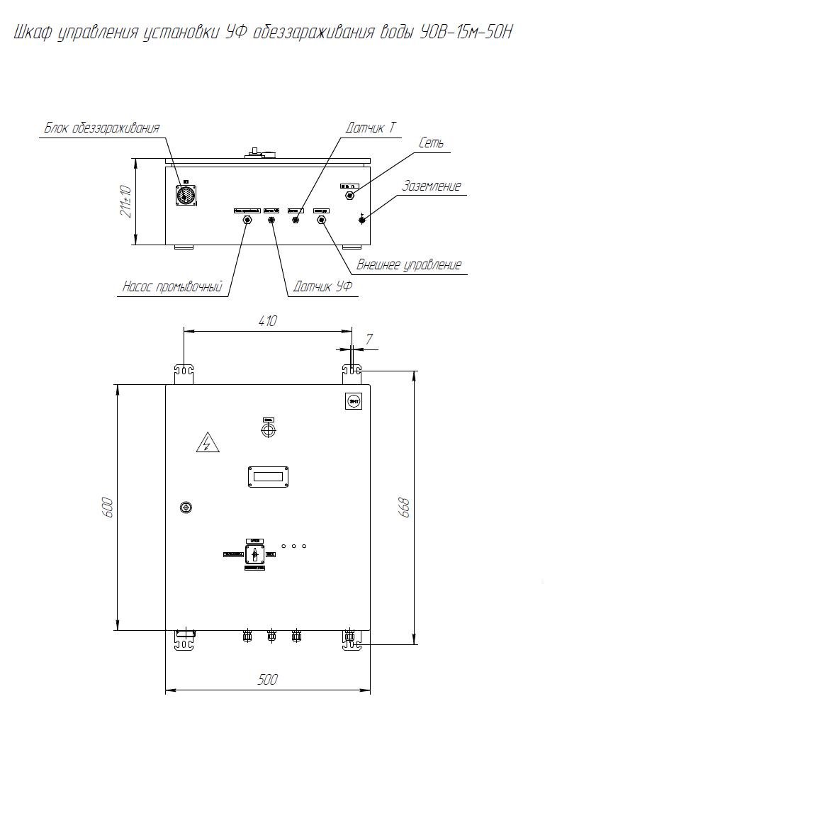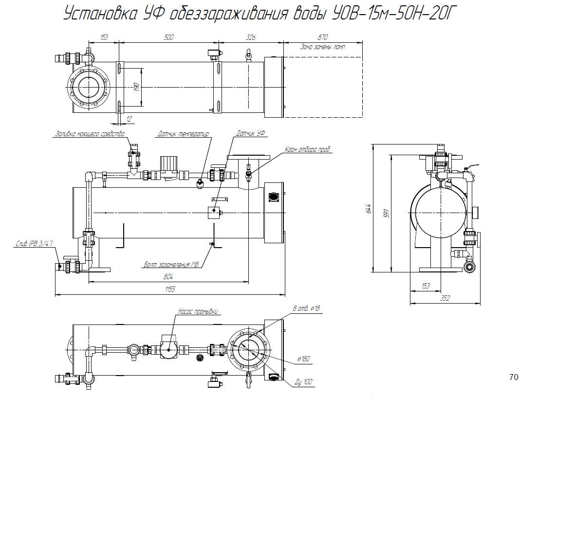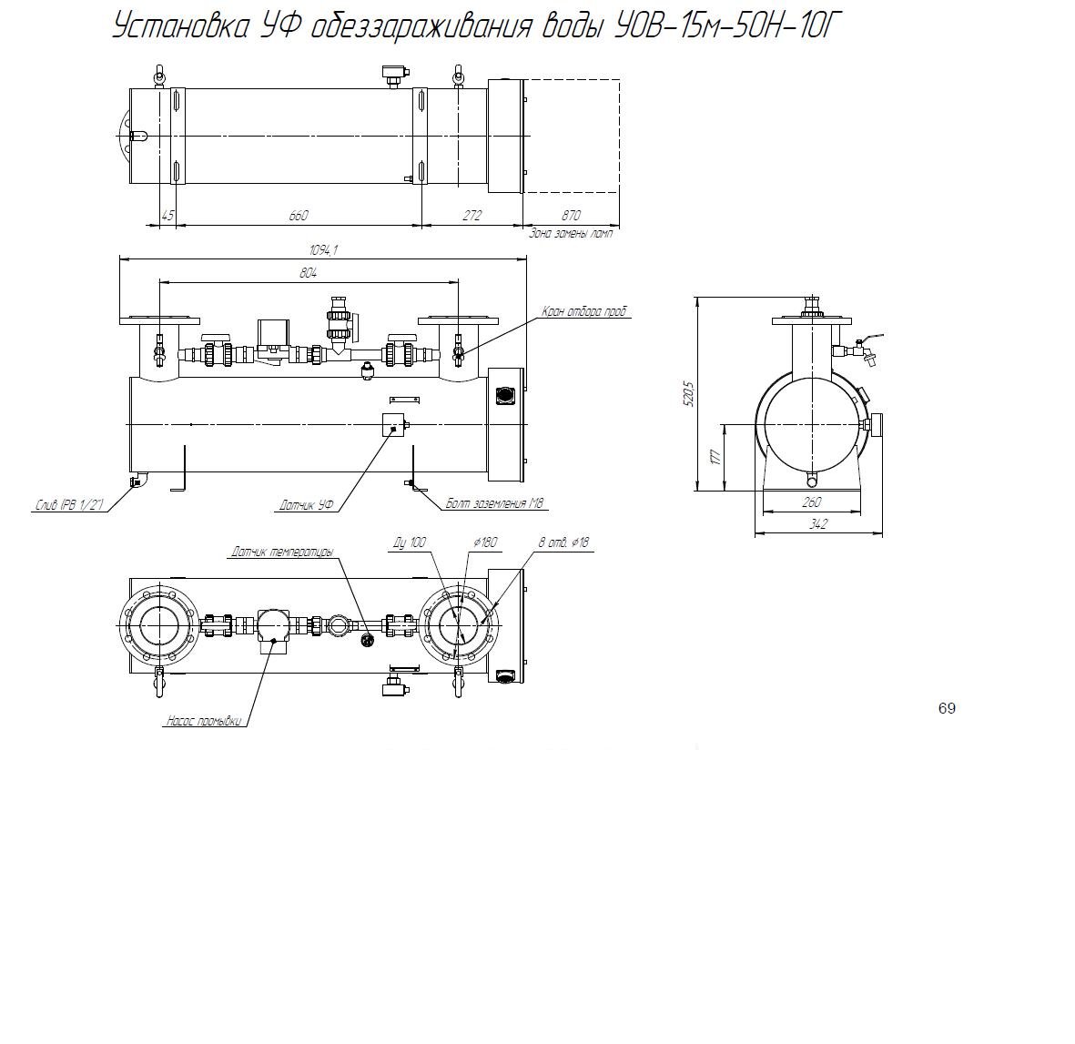Комплект поставки: Блок обеззараживания с амальгамными УФ лампами; шкаф управления с ЖК-дисплеем; датчик УФ излучения; датчик температуры; промывочное устройство; комплект ЗИП; паспорт, руководство по эксплуатации.