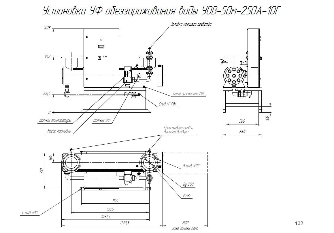 Комплект поставки: Блок обеззараживания с амальгамными УФ лампами; шкаф управления с ЖК-дисплеем; датчик УФ излучения; датчик температуры; монтажная рама промывочное устройство; комплект ЗИП; паспорт, руководство по эксплуатации
